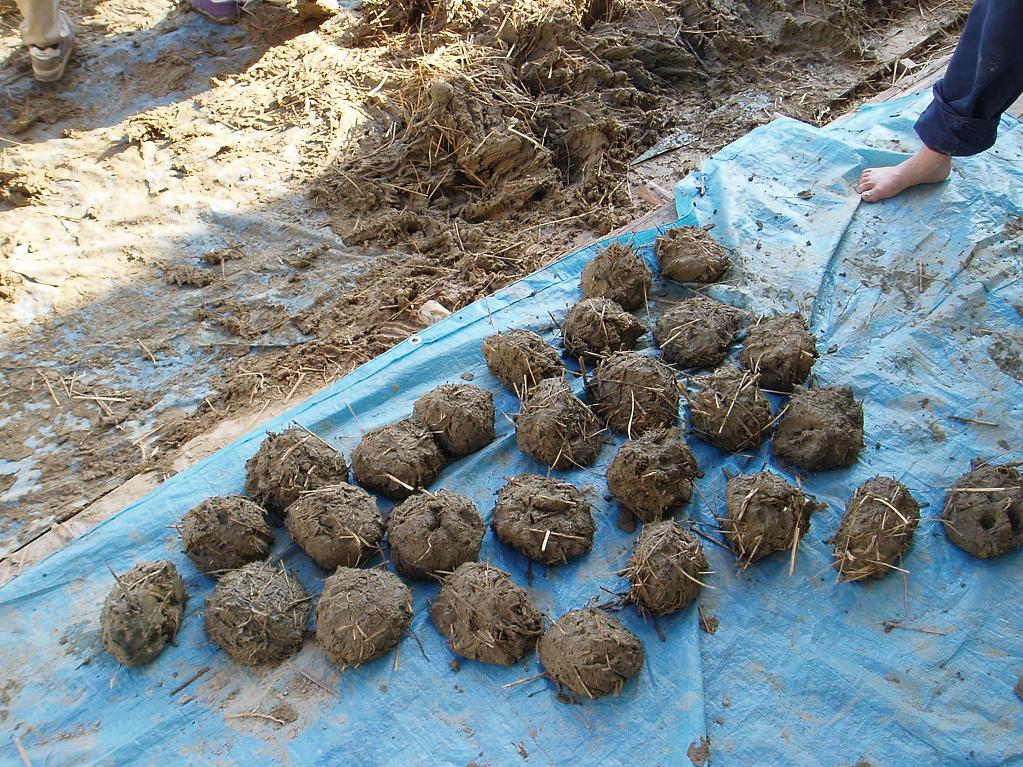 現場は早く、さっそく朝9時から土団子をどんどんつくっていきます。
