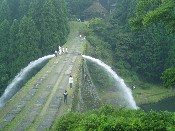今回は運がよく祭りにかぶり、祭りの日にしか見ることができない放水を見ることができた。