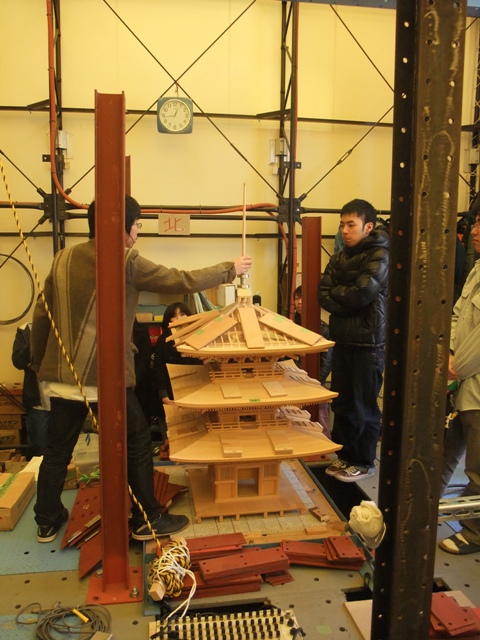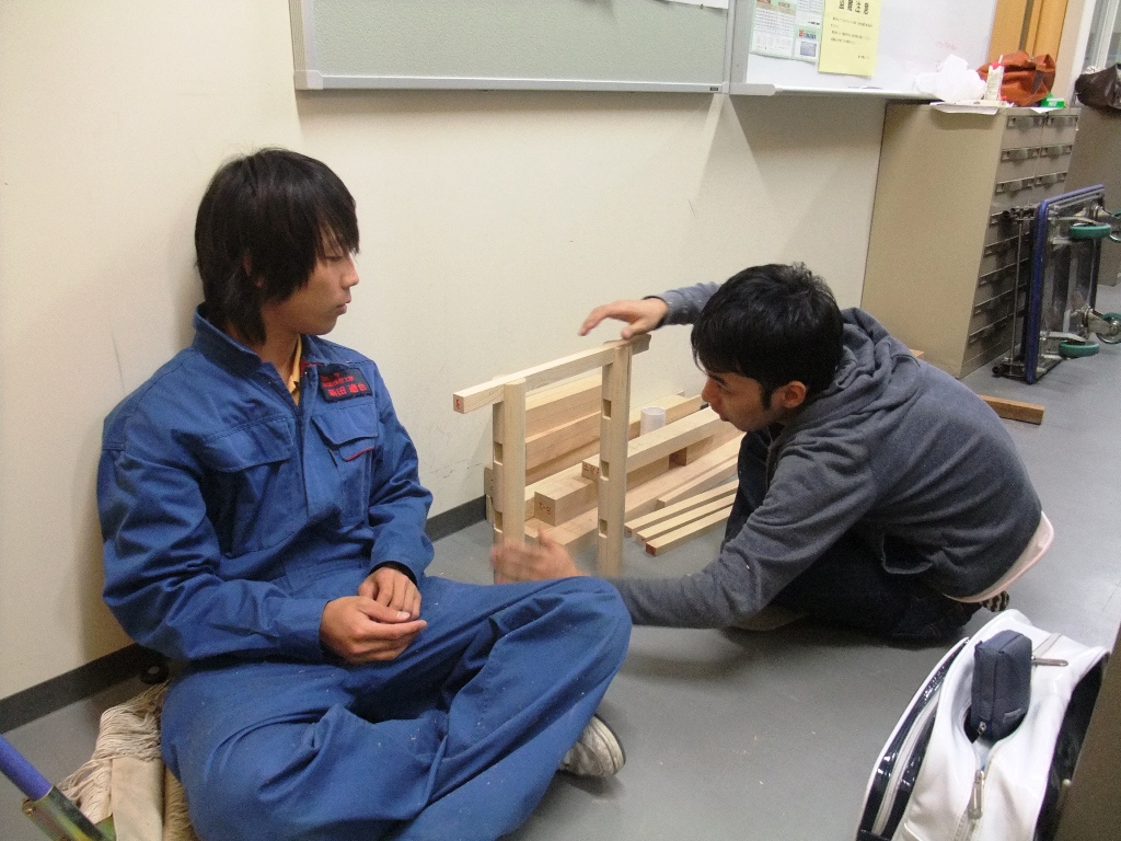 実験場では三重塔の実験の引継ぎが陽子ちゃんから新4回生へと行われました。