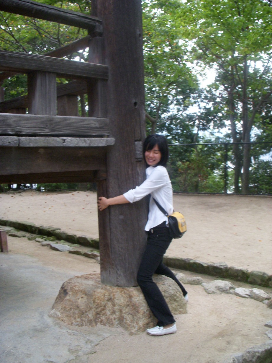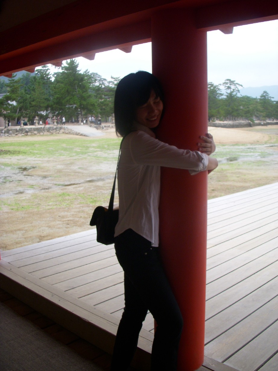 厳島神社のそばにある重要文化財の千畳何とか(名前を忘れました・・・)にも抱きついたー!!
