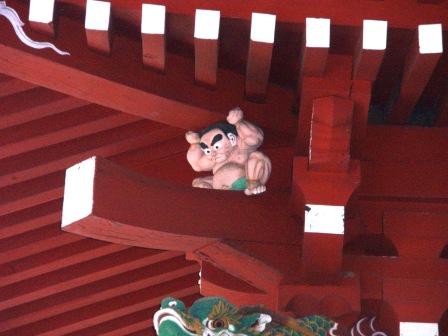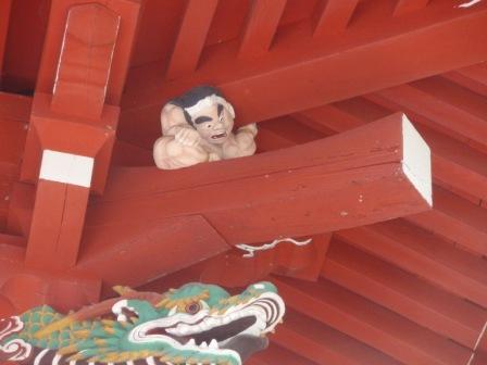 三十塔の一番下の屋根の四方にはそれぞれ顔の違った力士が屋根を支えていました。